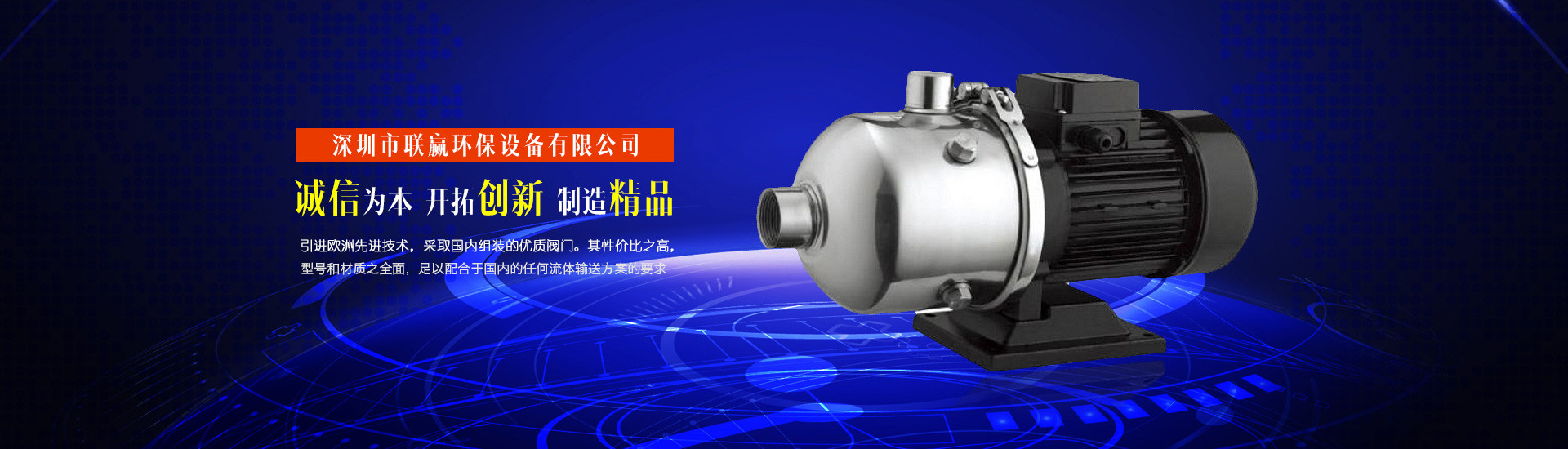 深圳市聯贏環保設備有限公司,是一家集合作研發·加工·生產·銷售為一體的國際化企業。為充分實現一體化流體設備配套服務,企業內設有大型物料倉庫及廠區,廠區內配置了包括 CNC 加工中心、鋸切機、 CNC 車床、銑床、沖床、雕刻機、氬弧焊、拉絲機、打磨和機械拋光等一系列完善的加工設備。